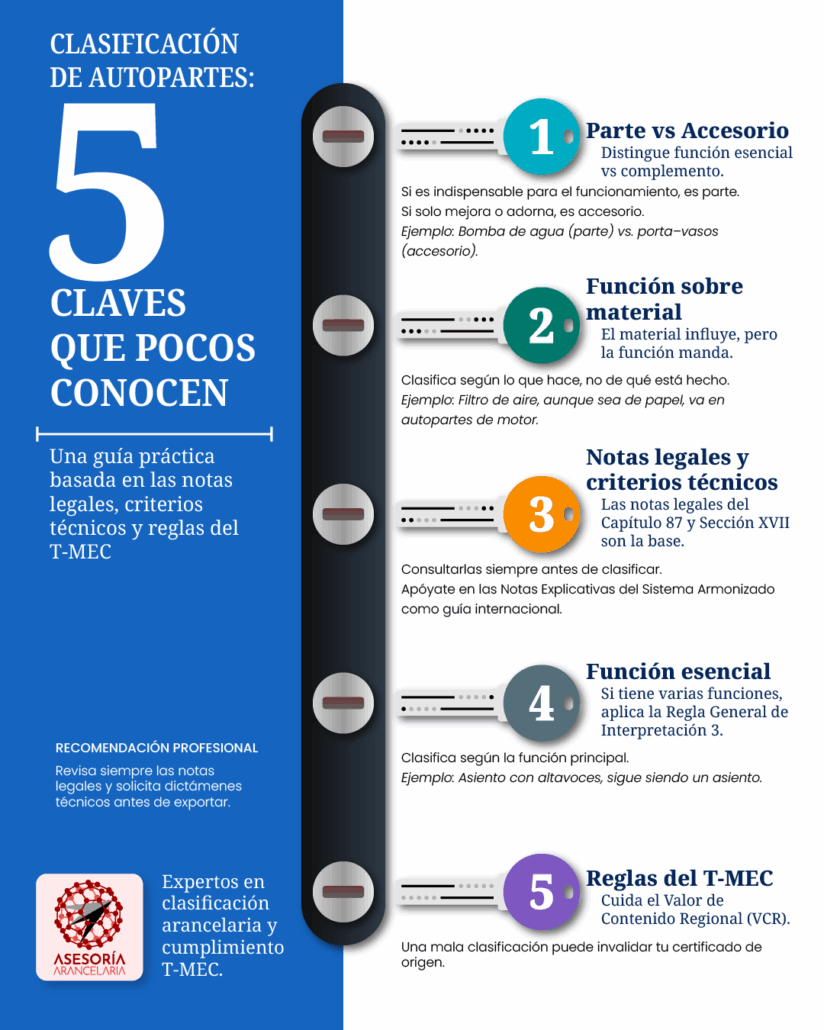 Clasificar autopartes correctamente requiere conocimiento técnico, interpretación normativa y experiencia práctica.
